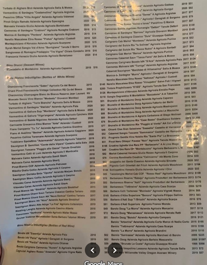 Such a charming, cozy restaurant. It was my second time dining at this establishment. We started with melt in your mouth, not too salty, 30-month aged prosciutto platter and a superbly dressed burrata and arugula salad. We shared the lamb dish which served two of us well. The flavor was deep and rich. It could have used a little more, "au jus" so to speak, but was still quite good. Service was excellent. Our wine choice, Pinot Bianco A.A. “Schulthauser” San Michele Appiano, 2022 suited all the flavors on the table.